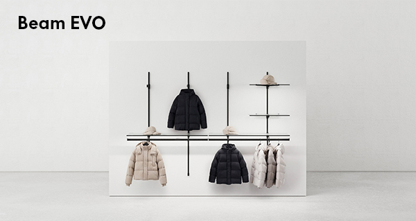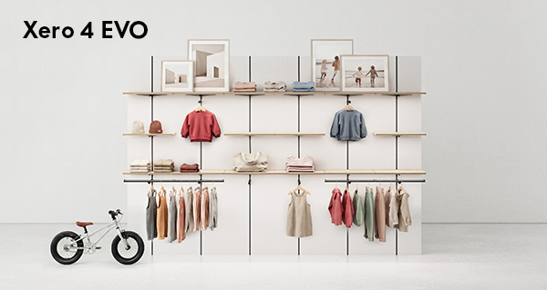 Based on decades of experience, we consistently refine proven systems. Beam and Xero 4 have long stood for minimalist wall systems with a clear design language and high flexibility. Display elements such as frontarms, support rails or shelves can be repositioned quickly and adapted at any time.