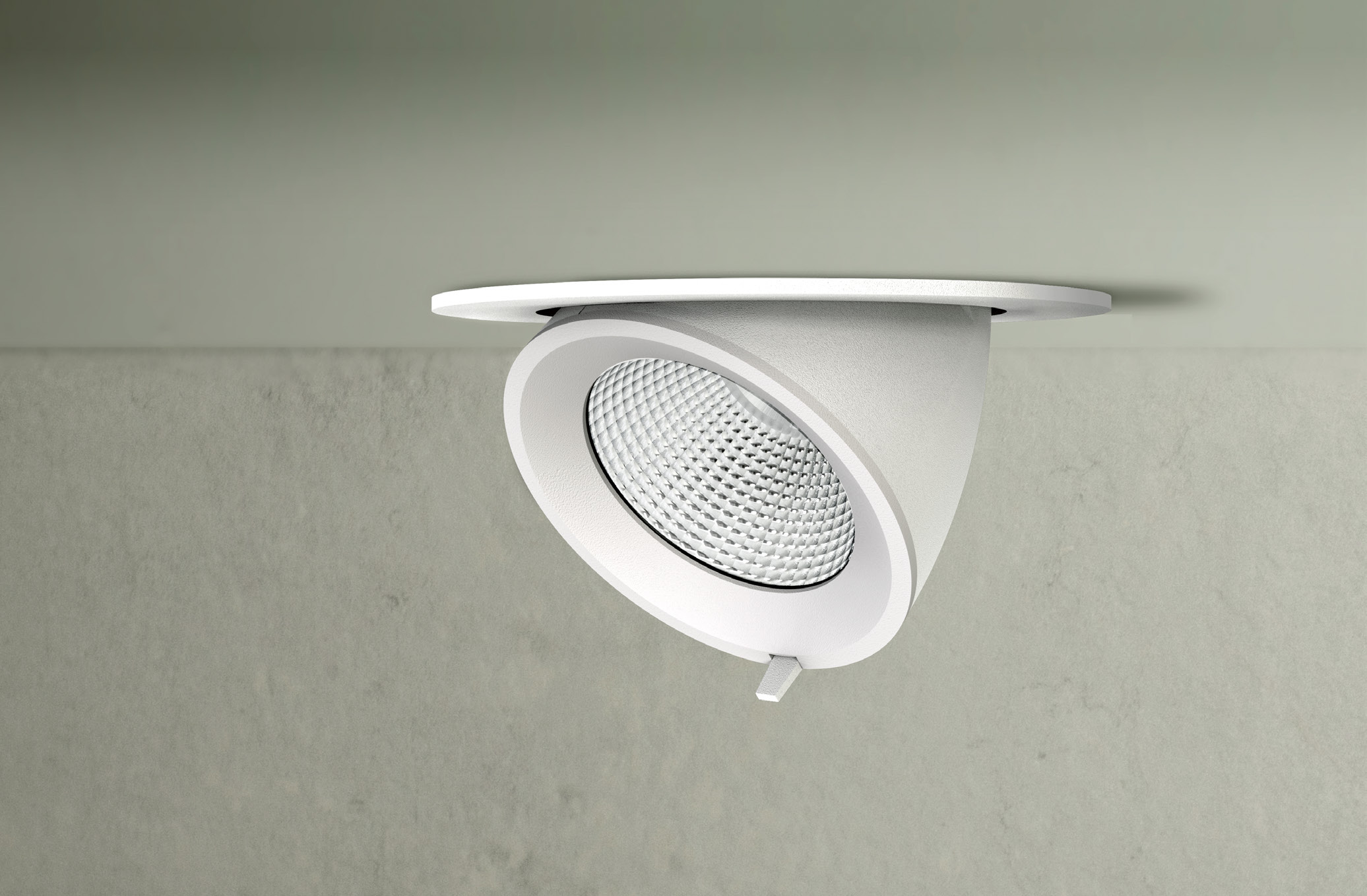 Recessed, adjustable spotlight designed for balanced performance and visual comfort support flexible lighting applications.