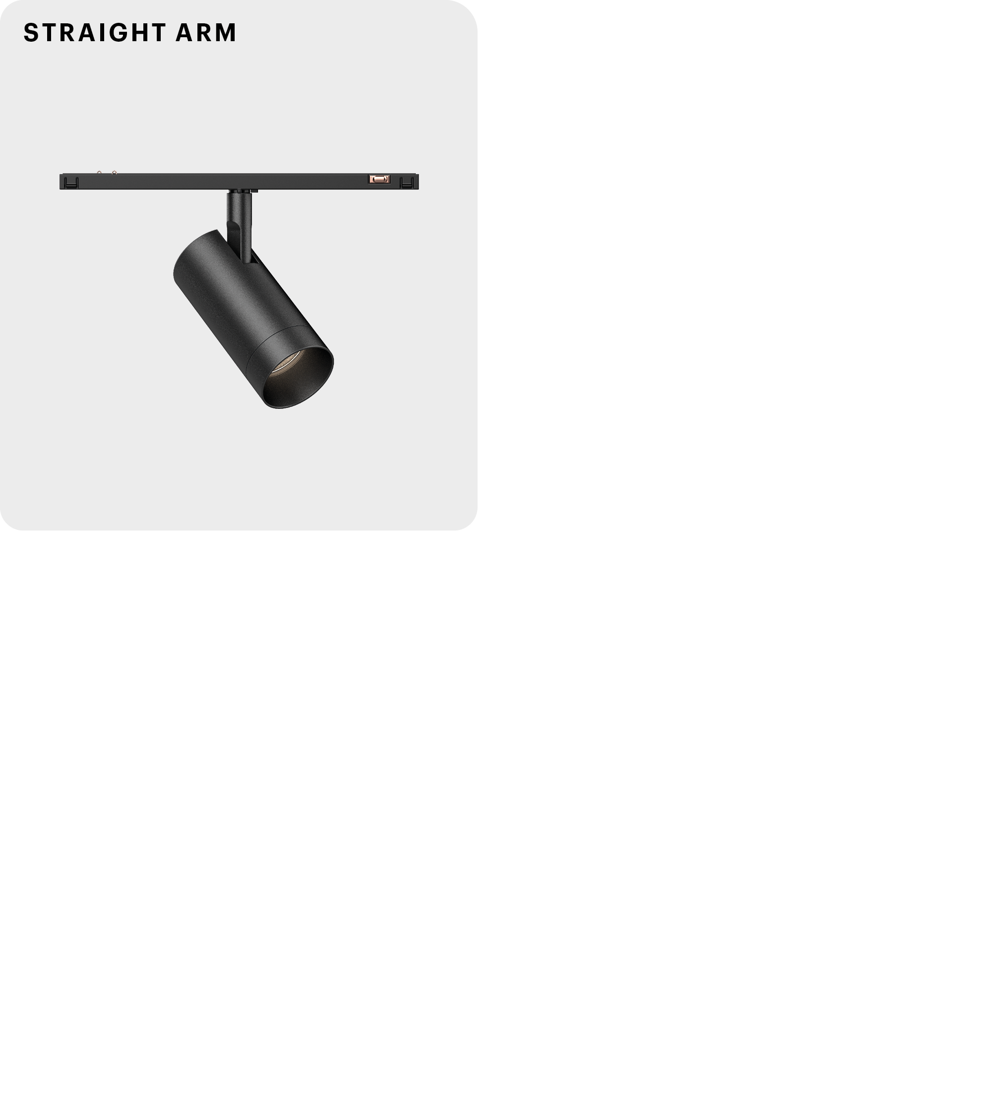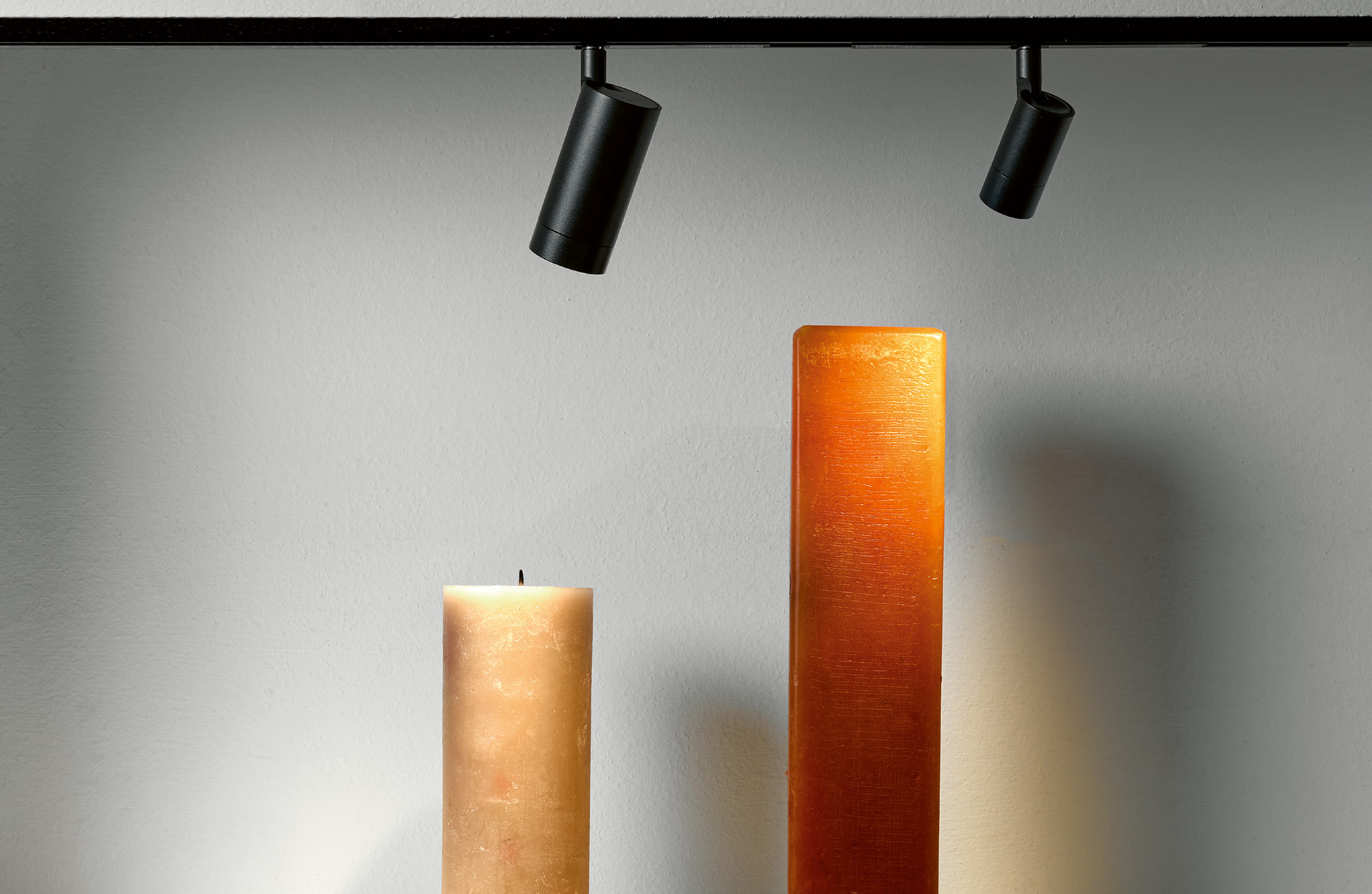 Ultra-compact track-mounted spotlight expressing the most essential interpretation of the Perla family.