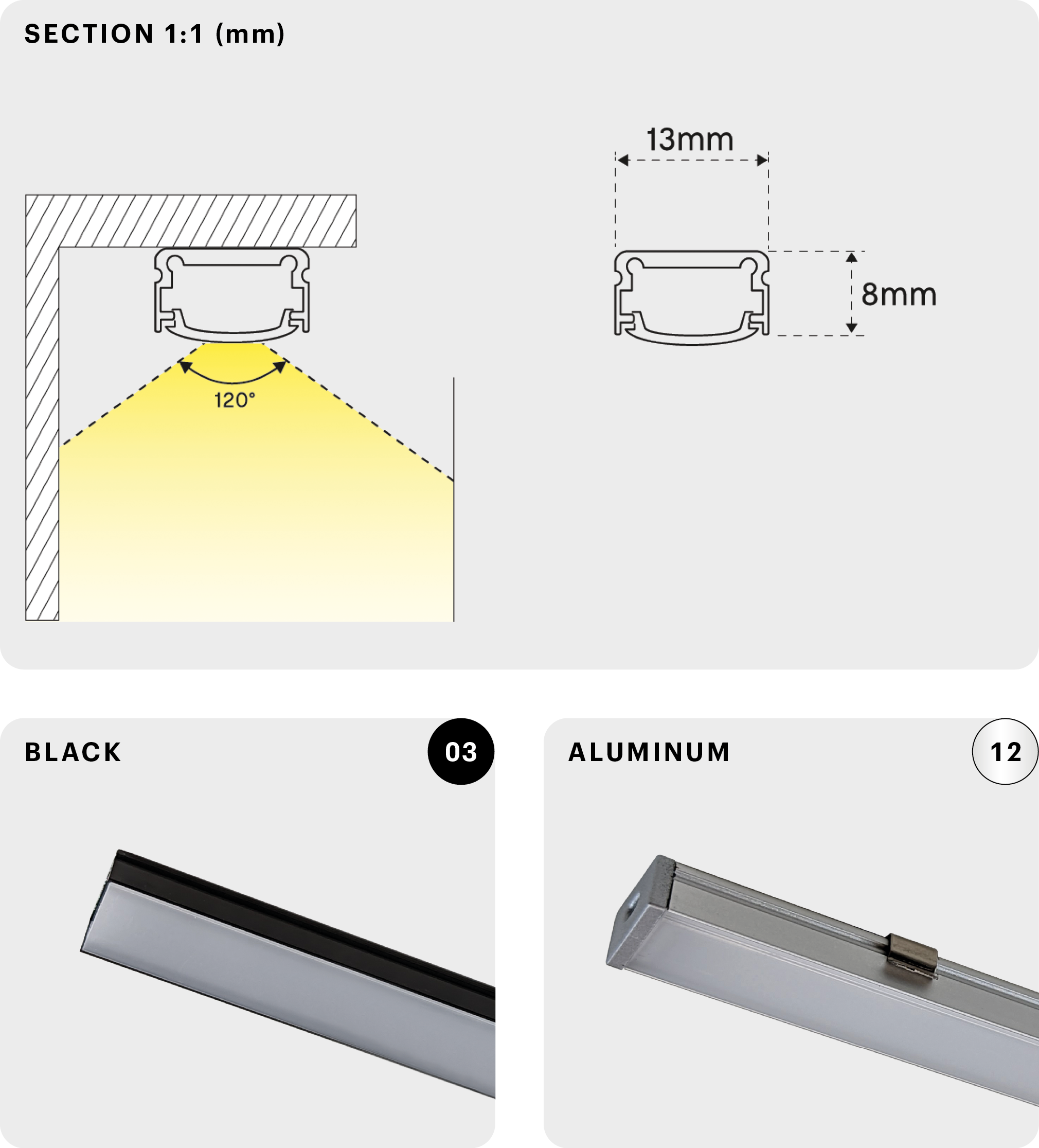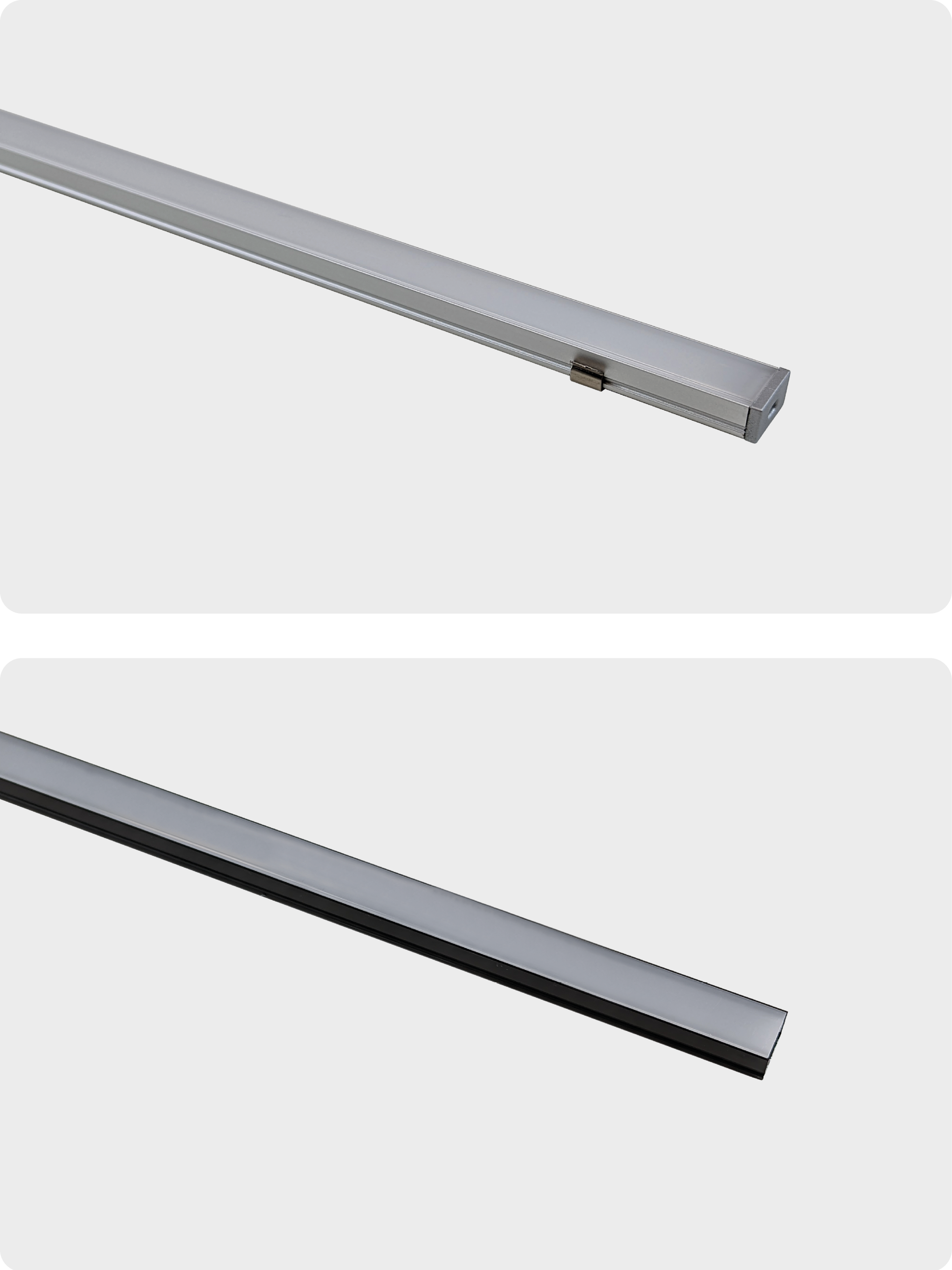 Ideal for retail displays, casework, and shelving. Surface mounted via mounting clips.