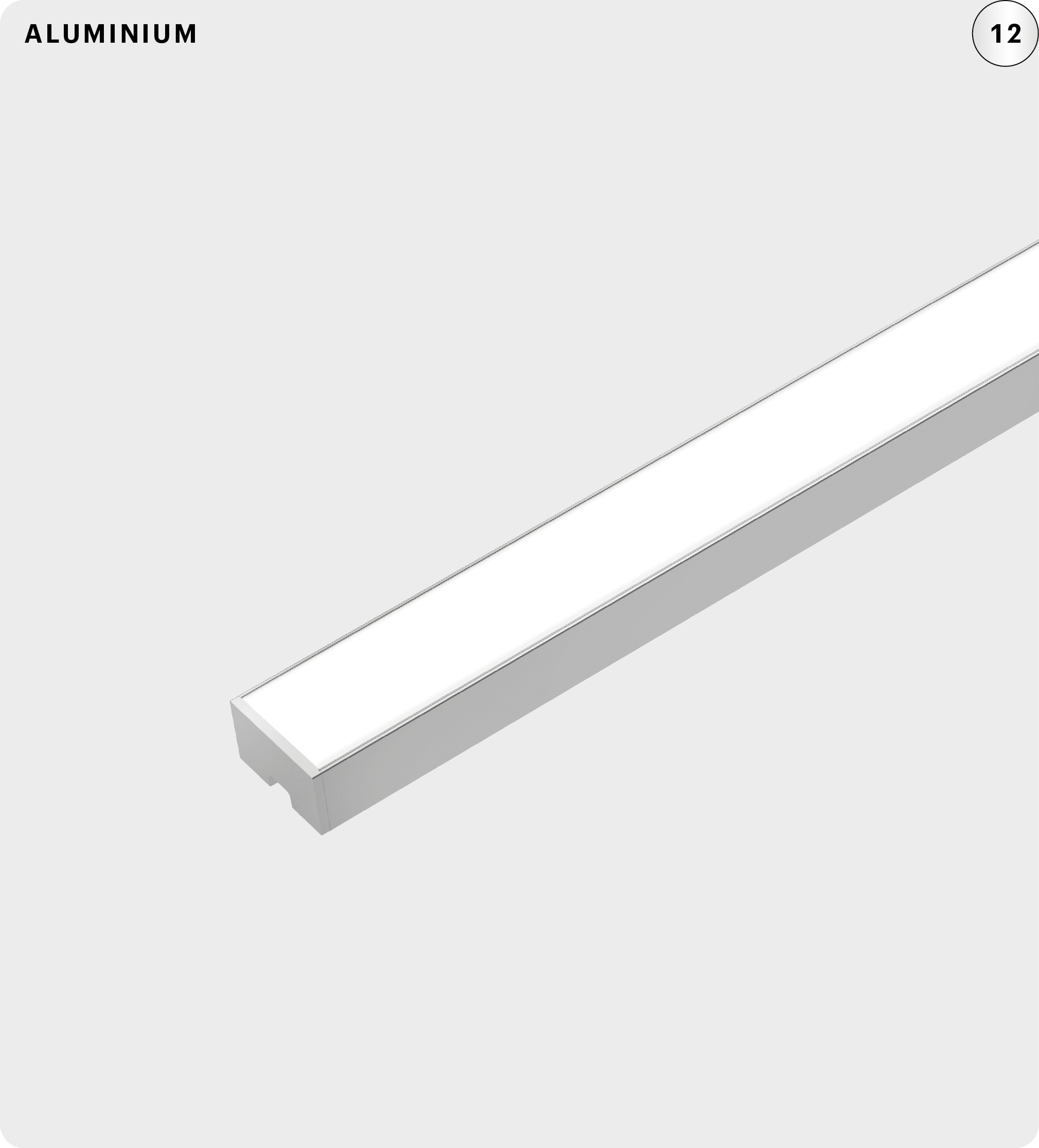 Aluminum linear profile with opal diffuser and end caps. Can be surface mounted with integrated magnet or recessed mounted with plastic clips.