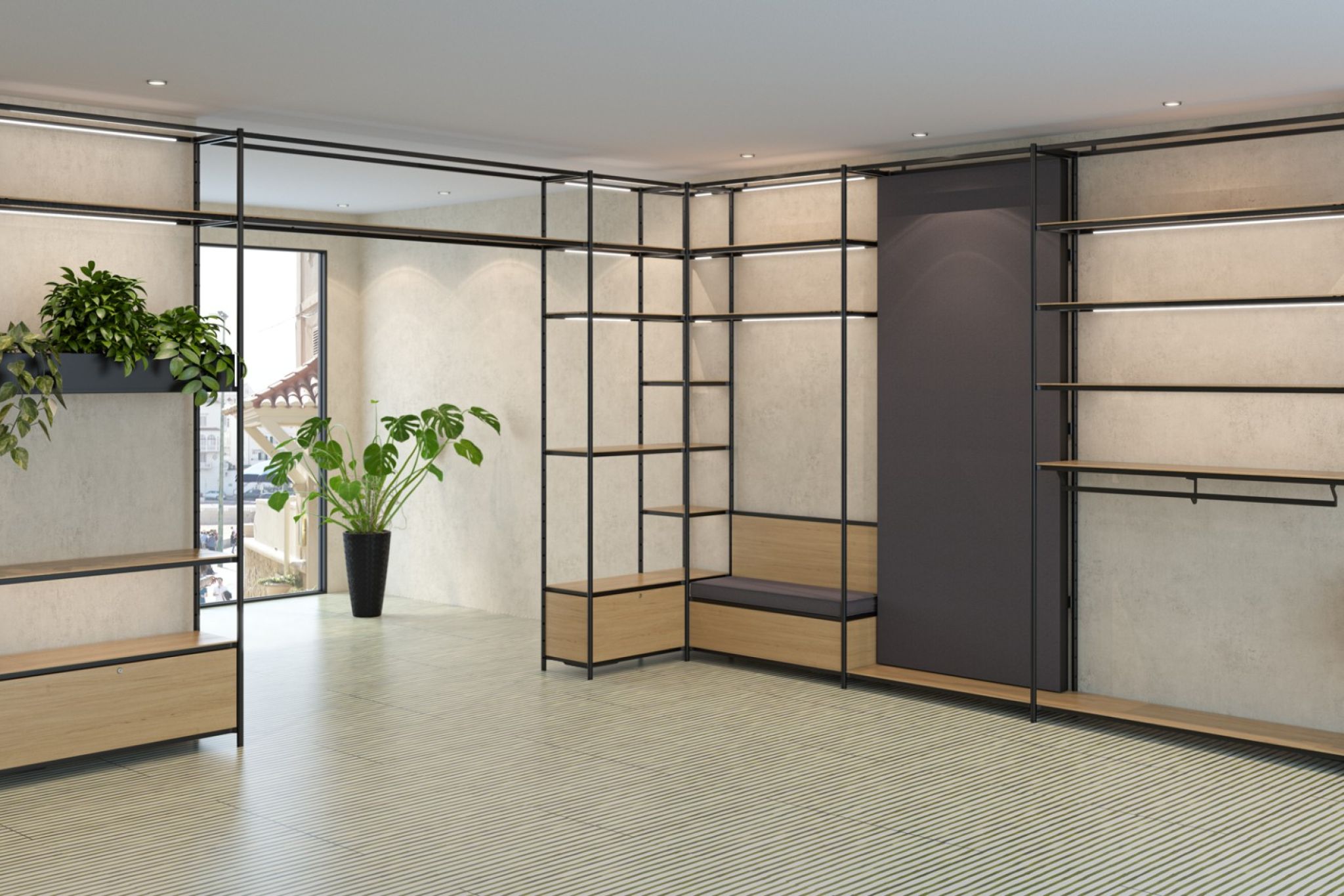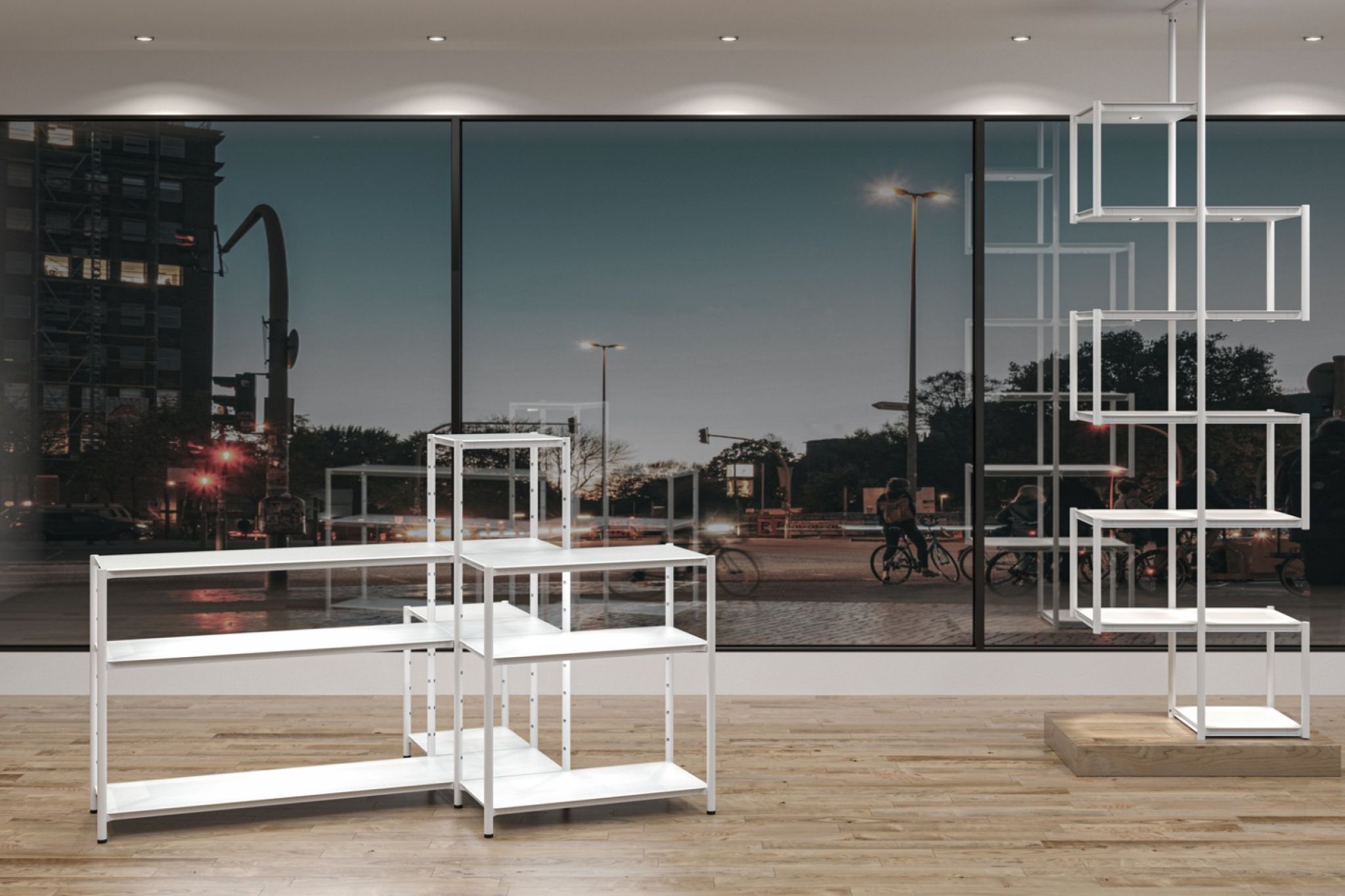 Omnio is easily modifiable in look and feel: the structures can be extended with additional uprights and shelf frames in response to changing requirements.