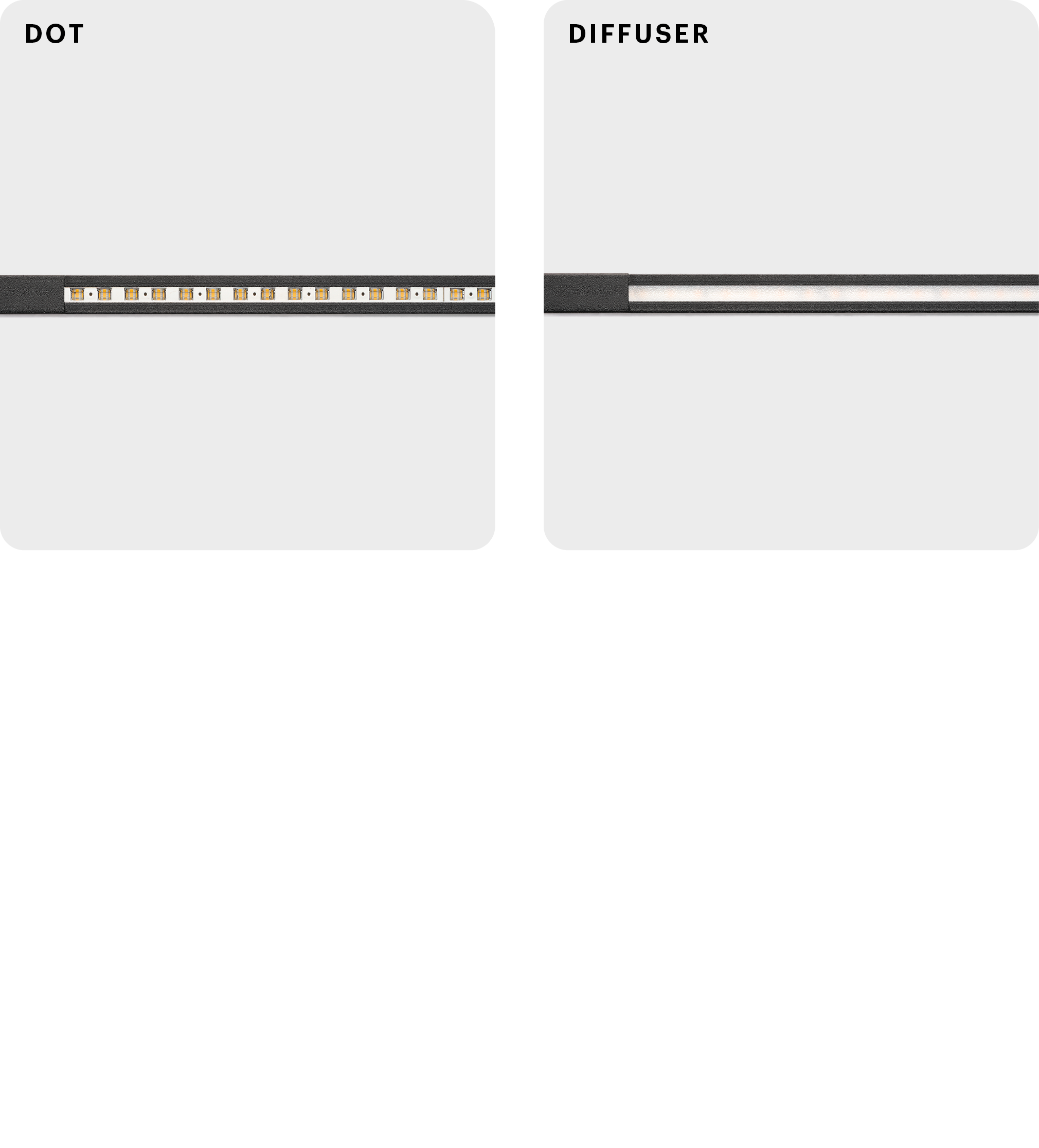 Maximum flexibility for this linear light with T-joint connectors, dot or diffuser options, square architectural body, 360° aiming, plug-and-play install and adjustable height.
