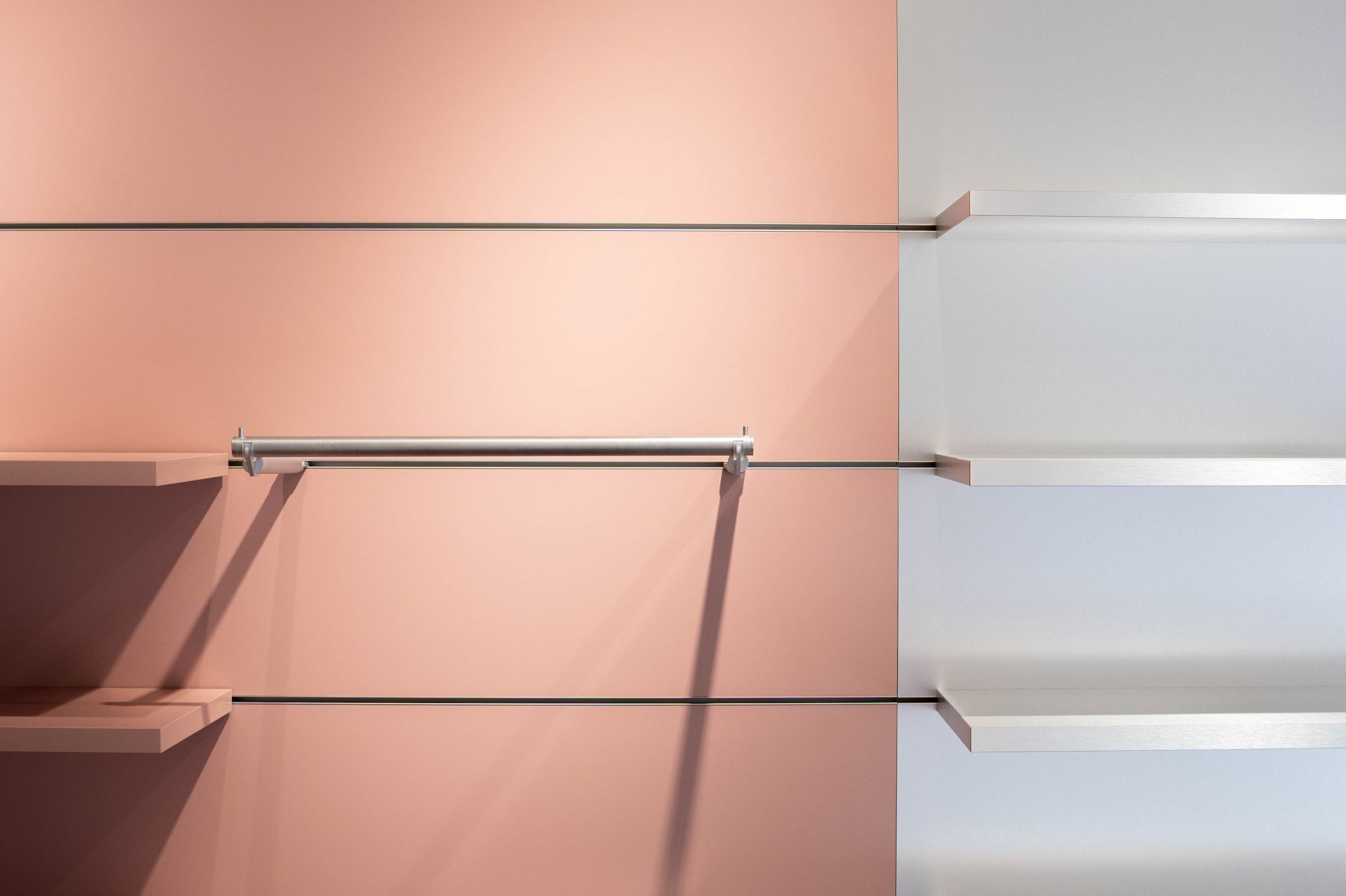 Invisible blends seamlessly into the design concept, perfectly complementing the stainless steel accents and rose-toned elements. Its minimalist design ensures it fits effortlessly into any setting, combining modern aesthetics with the versatility to customize and reconfigure fixtures to suit individual needs.