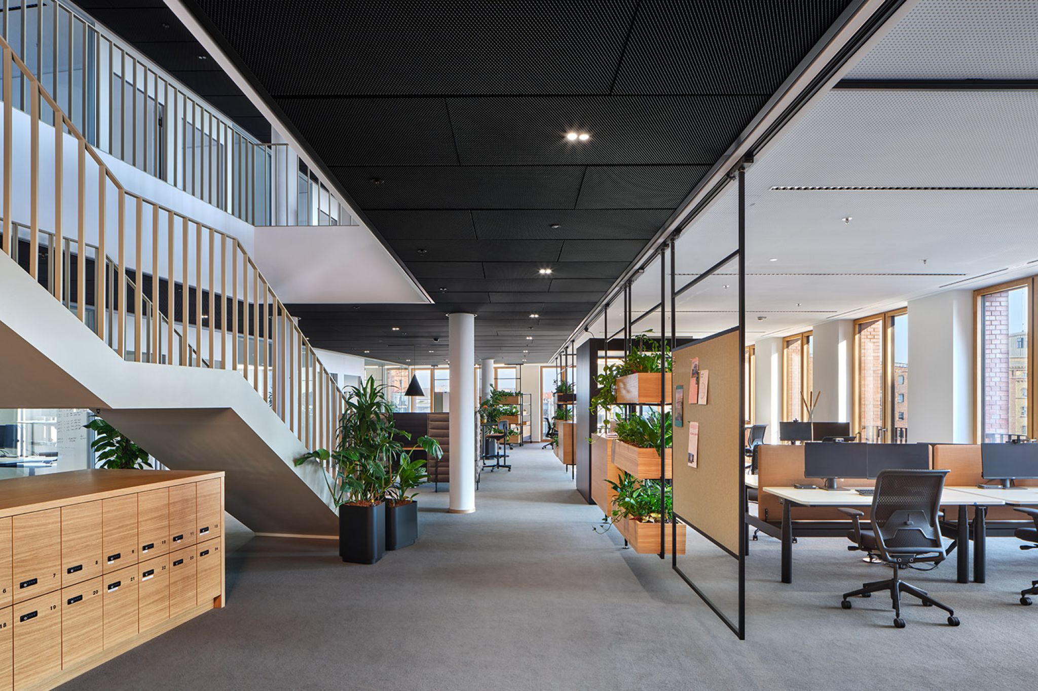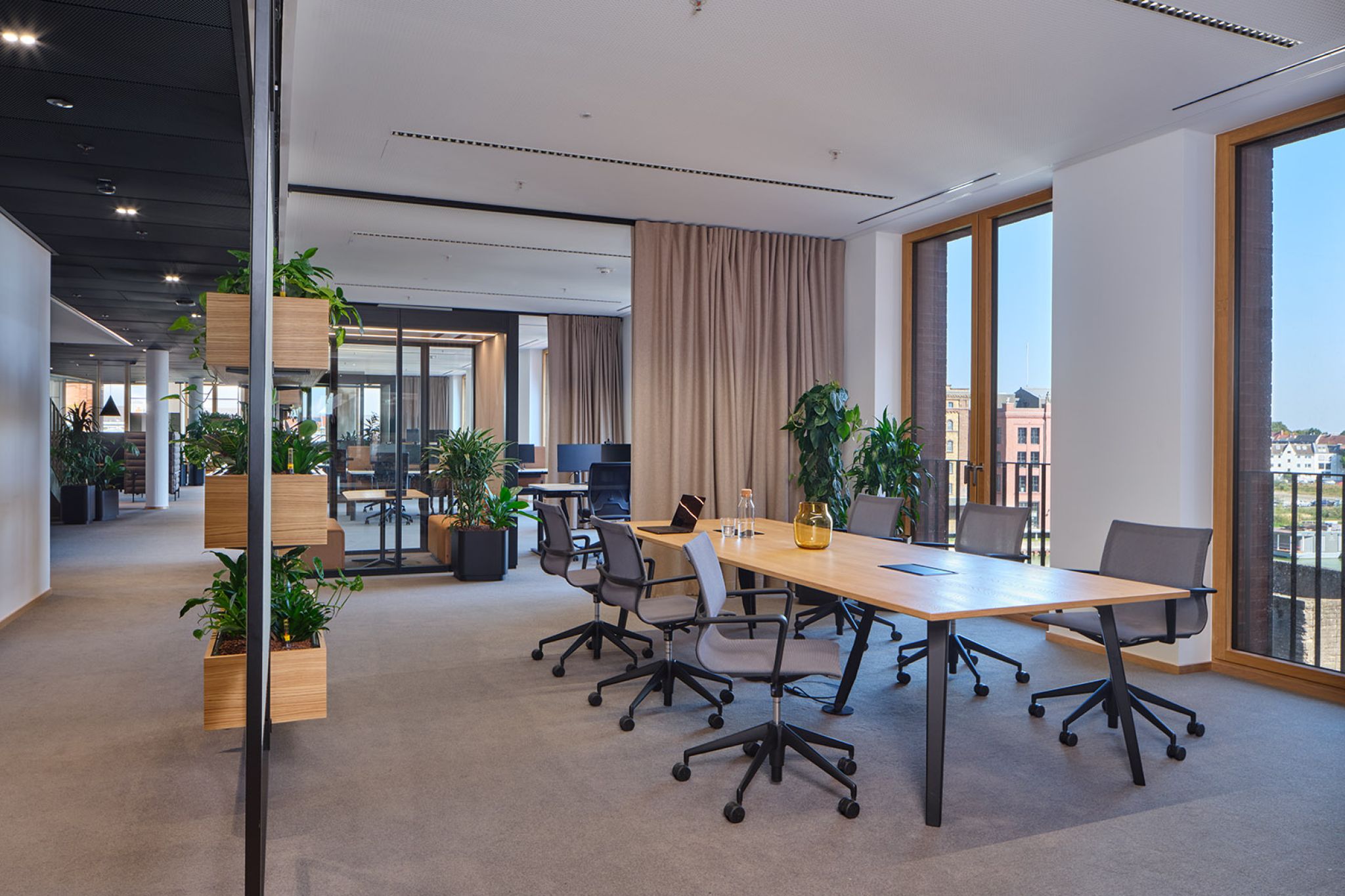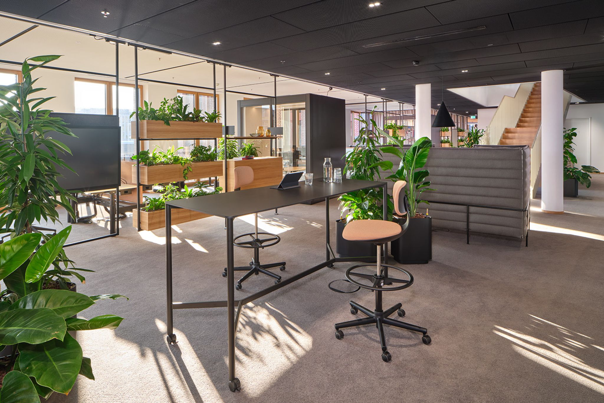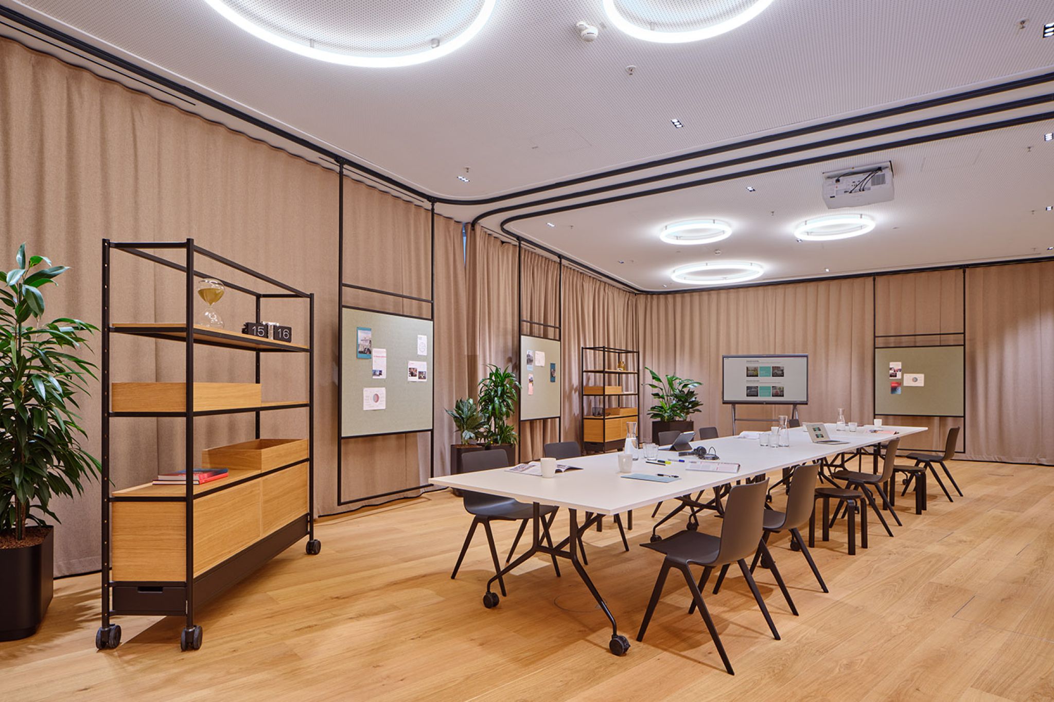 FIEGE, a family-run business recognized as a leader in logistics innovation, has introduced a cutting-edge New Work environment in its new office building at Münster’s Kreativkai harbor. The modern workspace was designed using our modular Omnio Office system and our versatile Multi-Lane ceiling rail system.