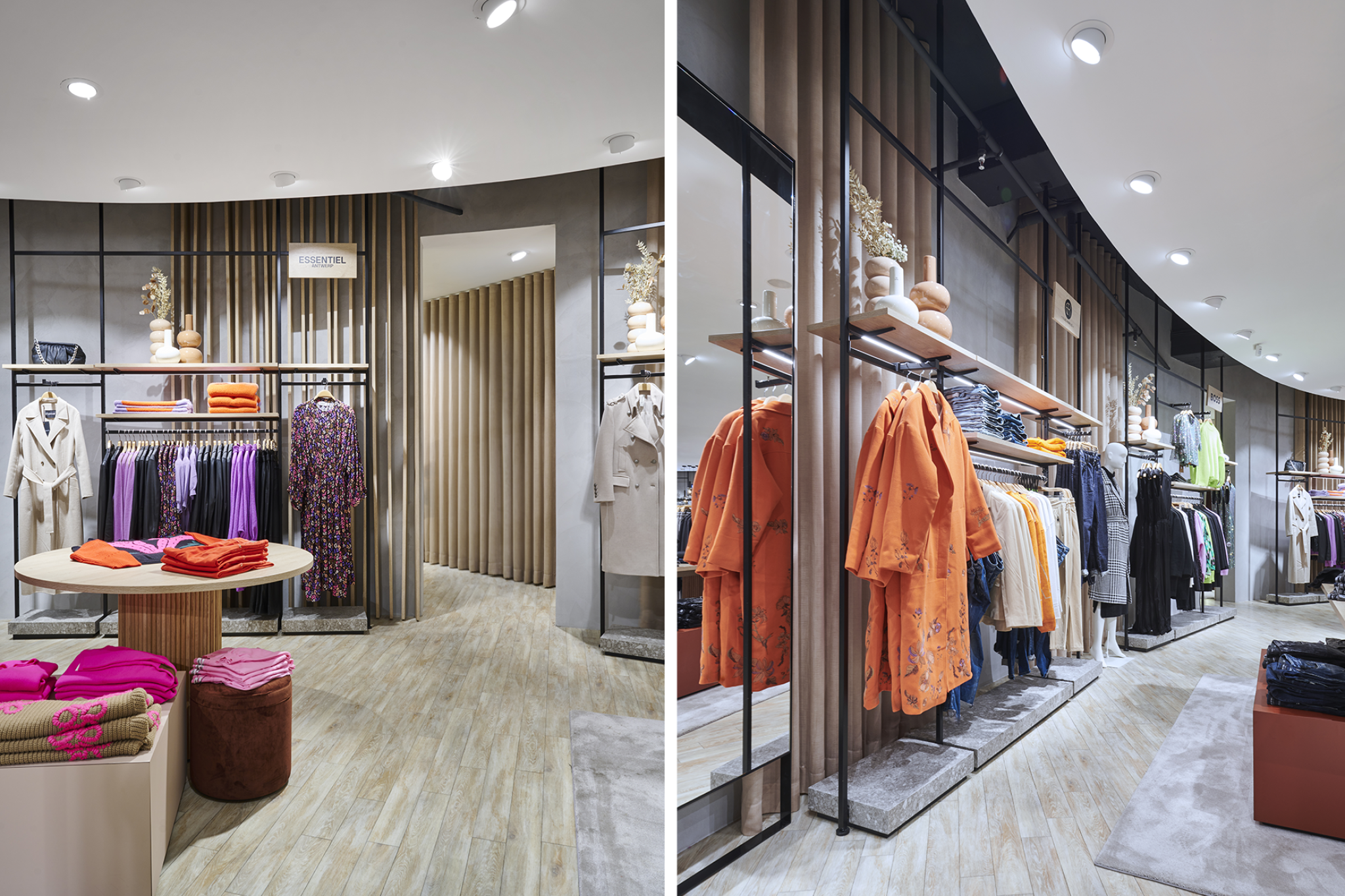 Invisible 6 and Qubo Wall were implemented on a generous sales area of around 600 m². The simple design of Invisible blends in perfectly with the surroundings and allows the product displays to be repositioned effortlessly. For this project, Qubo Wall was not attached to the wall, but fixed between the floor and ceiling. This allows the system to stand out from the wall and creates a floating product presentation.
