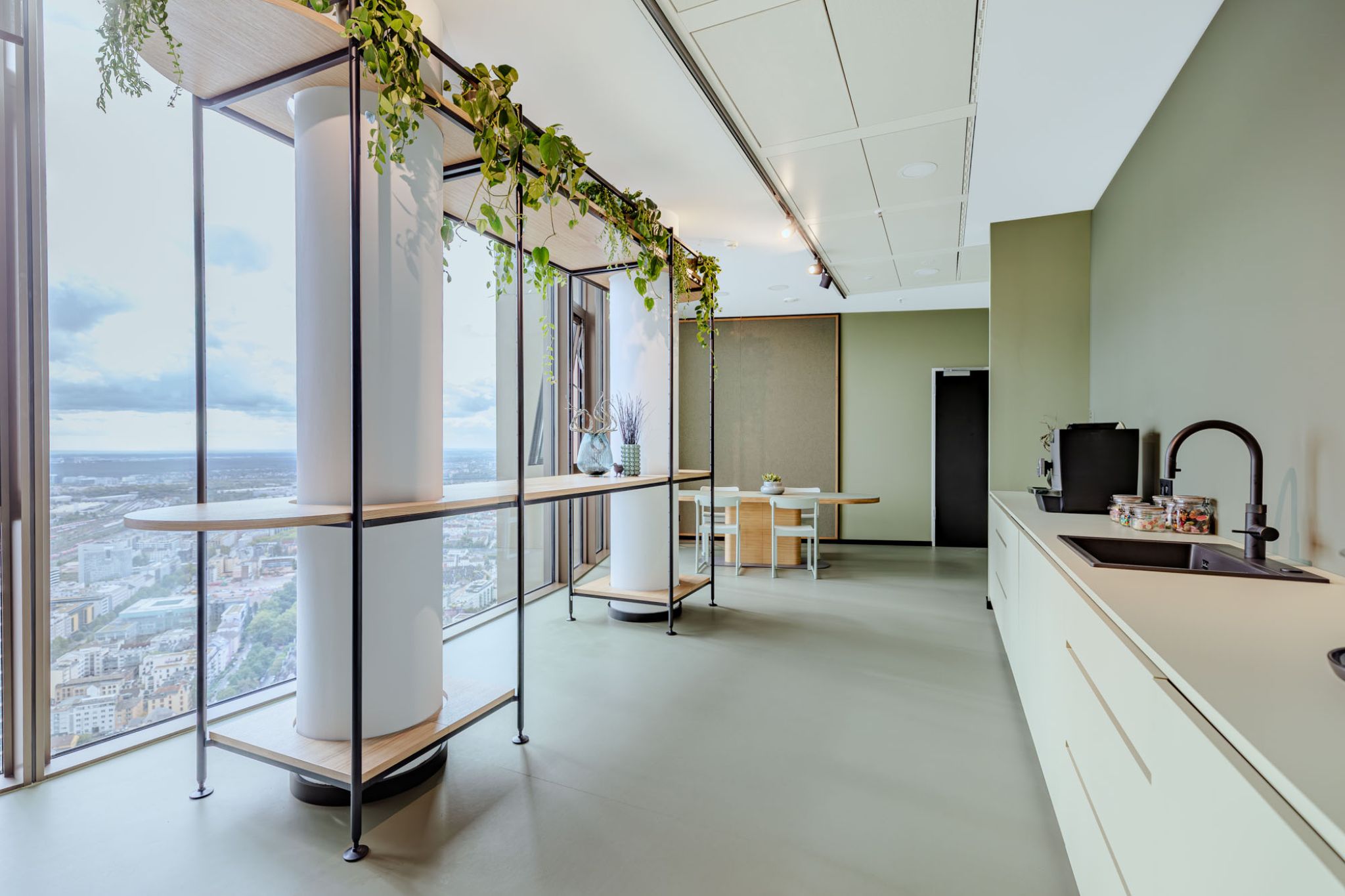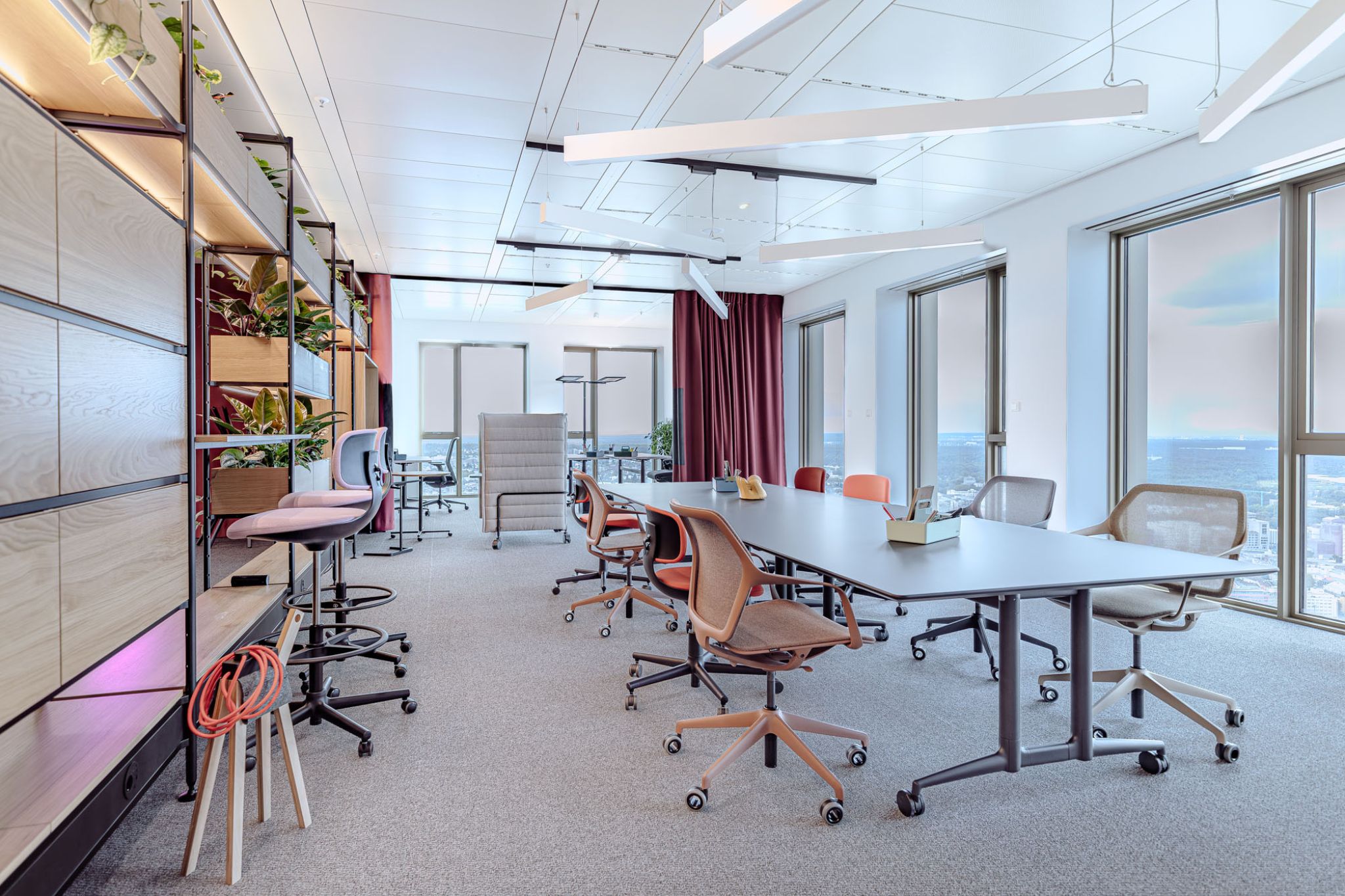 A unique experience space has been created by raumagentur with nest185 in Tower 185 in Frankfurt. Located high up on the 45th floor, it not only offers a stunning view over the city but also introduces a pioneering office concept that focuses on interaction, creativity, and flexibility. Equipped with our modular Omnio Office system and the innovative Grid 50 support structure, nest185 showcases an inspiring work environment that dynamically adapts to diverse needs.