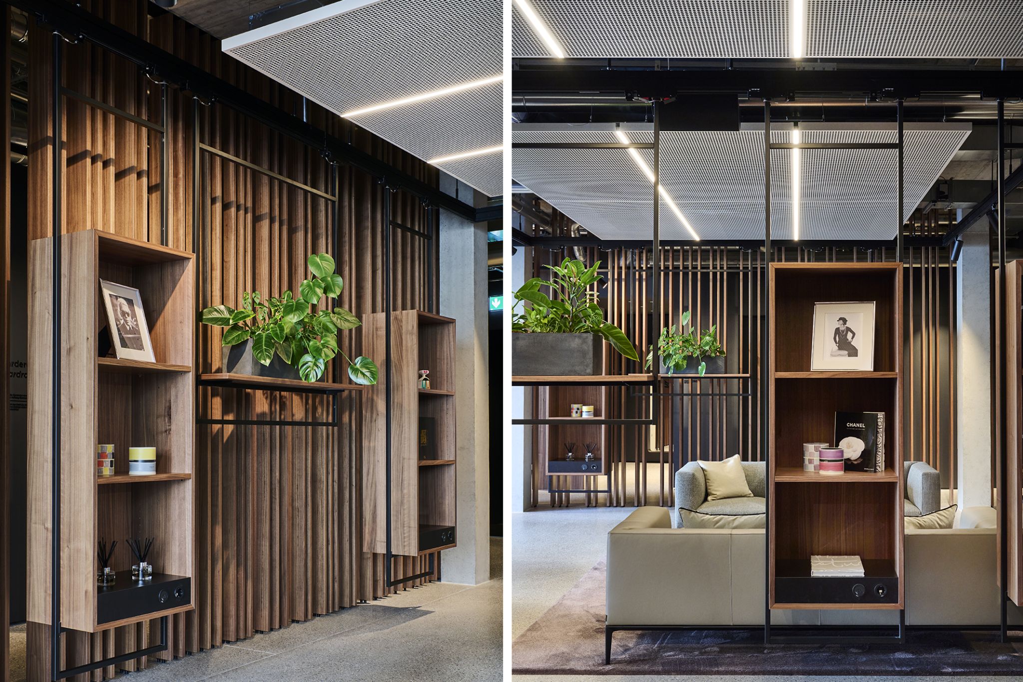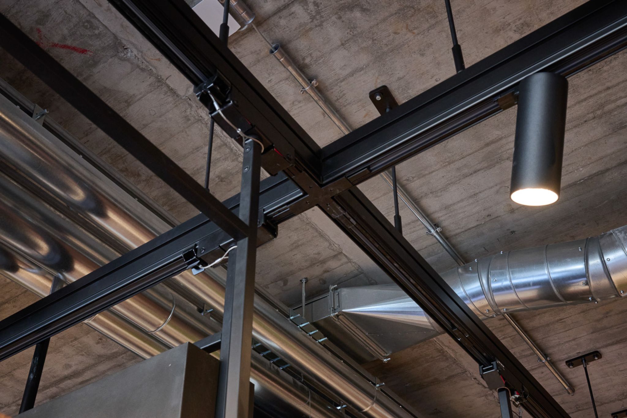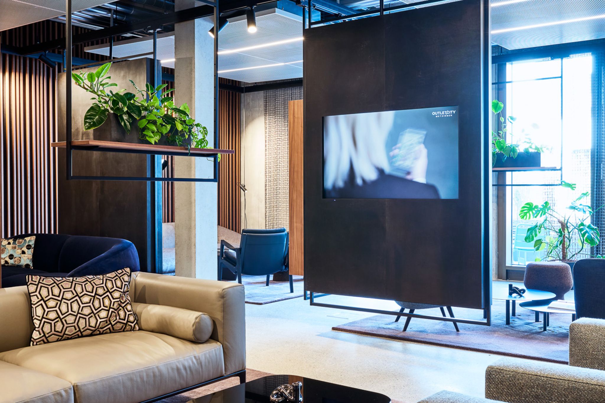 The relaxed and inviting ambience is perfectly complemented by the timeless design of our Multi-Lane system, which blends seamlessly into the interior and enables a clever partitioning of the space. The entire electrification system is concealed within the Multi-Lane rails, allowing extensive lighting areas and the integration of a display screen.