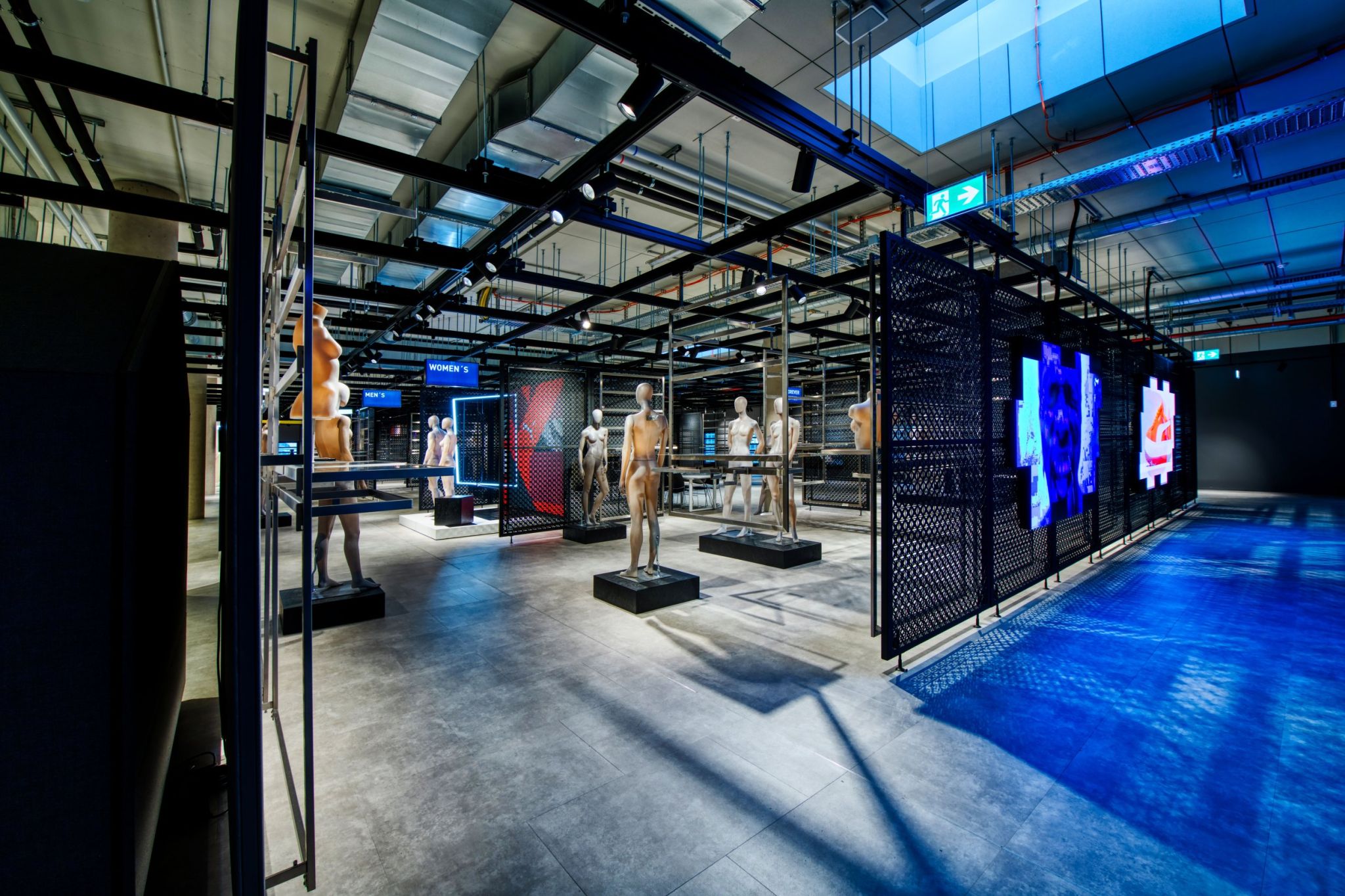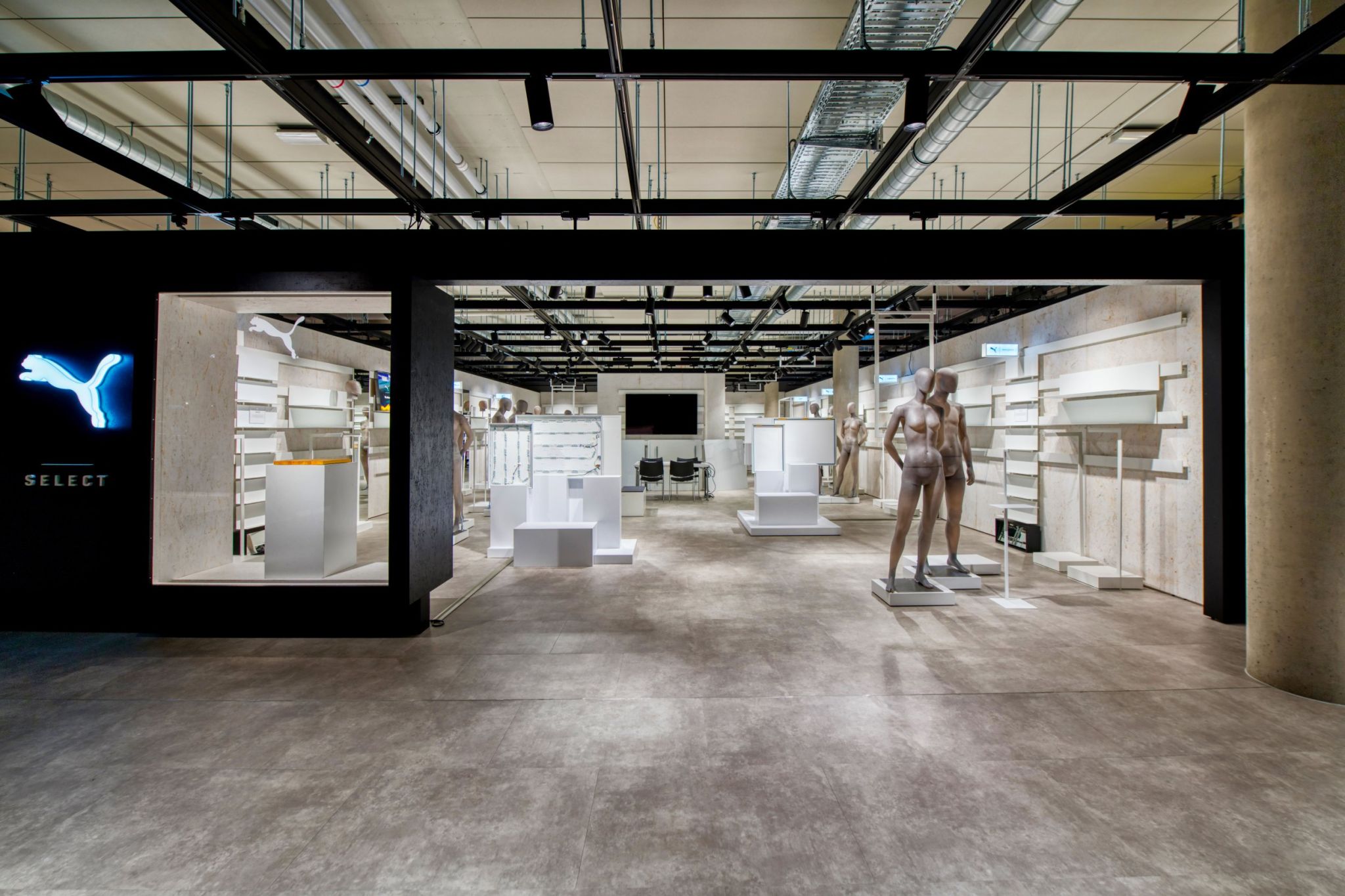 In 2020, an area of 3,000 square meters was created in the PUMA Brand Center at the headquarters of the sporting goods manufacturer, where new collections and store concepts are staged. It can also be used for meetings and conferences. To achieve the greatest possible flexibility, the Multi-Lane ceiling system from Visplay was installed throughout the entire area.