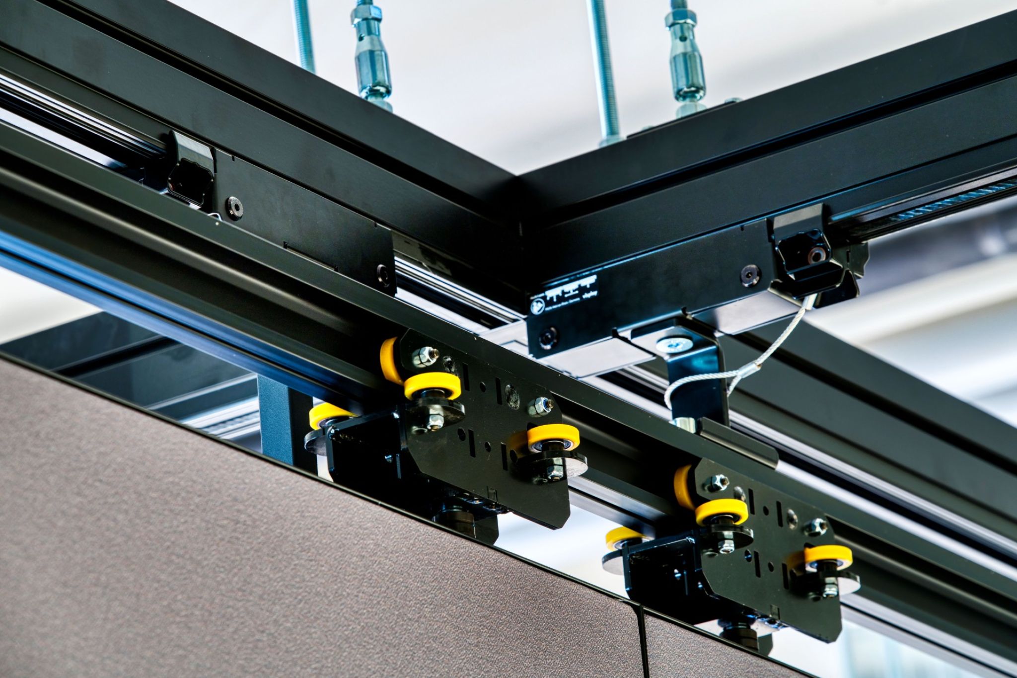 Power rails were integrated into the ceiling rail system. The entire power supply is routed via the ceiling system, so the floor remains free and the planning is detached from floor boxes. The lighting design for the 3,000 m² area is handled by our partner Zumtobel.