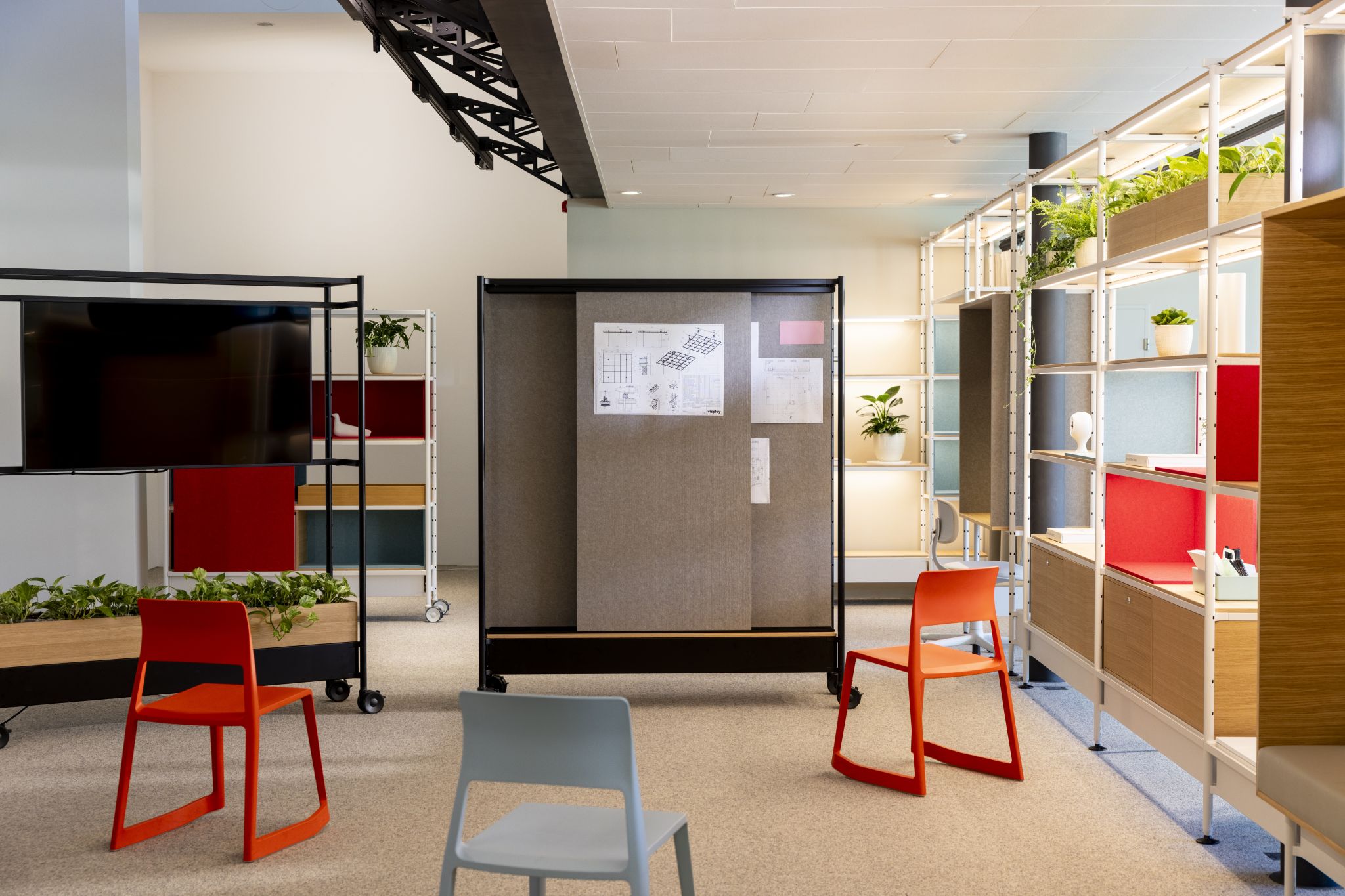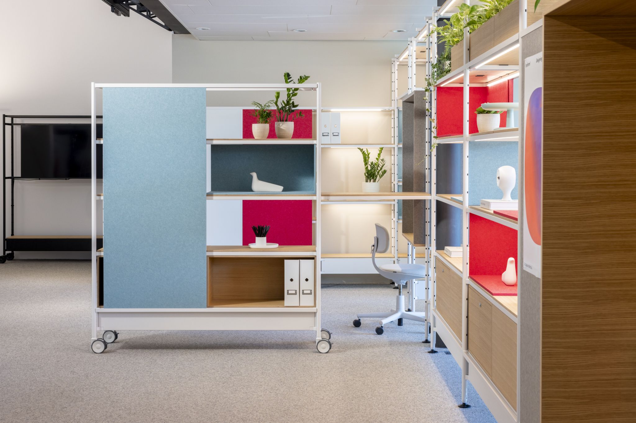 The Visplay Office was outfitted with the modular Omnio Office System to create a flexible and inspiring working environment. The combination of static elements and mobile modules provides stable structures, while enabling spontaneous adjustments at any time – perfectly tailored to agile work processes and creative collaboration.