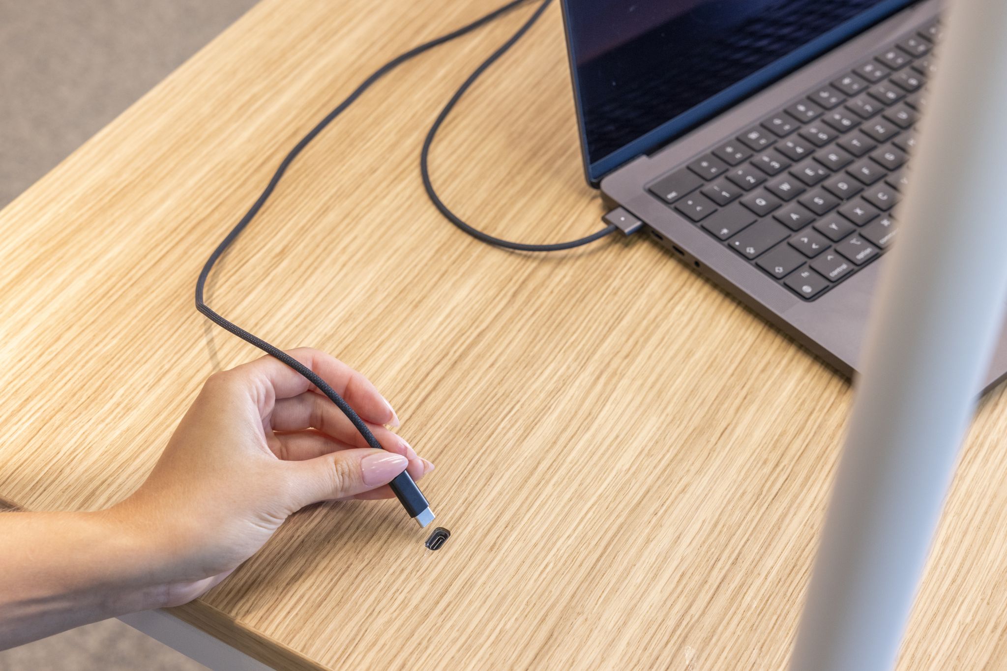 The discreetly integrated routing of power and data cables within the base of the modules ensures effortless cable management. Thanks to the optional electrification and USB-C ports, the system allows for the direct charging of digital devices. In addition, flexible storage cabinets ensure organisation and keep documents and personal items safe and secure.